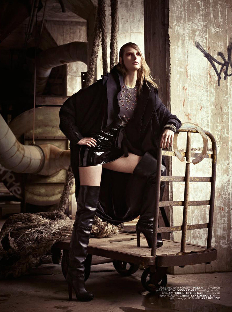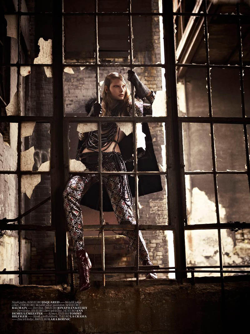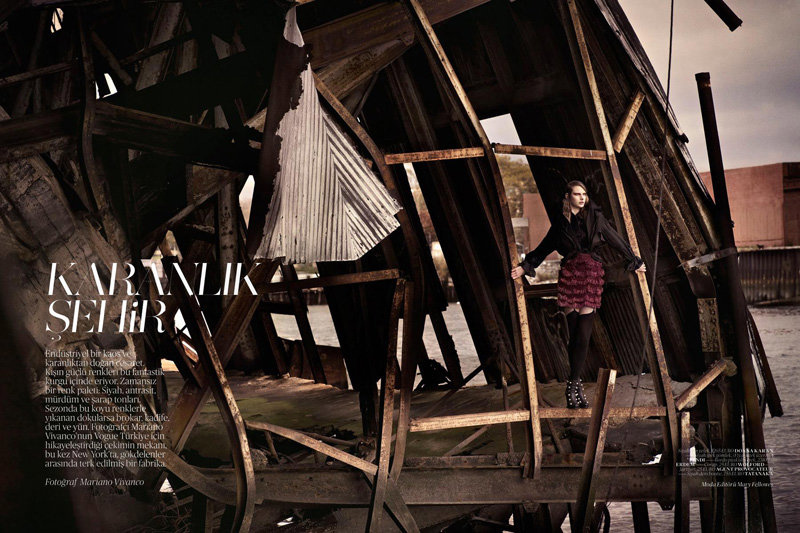 Endüstriyel bir kaçış ve karanlıktan doğan cesaret.Ylonka Verheul'la gerçekleştirilen bu harika çekimin fotoğrafları Mariano Vivanco'nun objektifinden çıktı.Mekanımız ise New York'ta gökdelenler arasında terkedilmiş bir fabrika.Karanlığın içinde hem renkler hem bakışlar çok güçlü ve gözlerimizi alacak kadar ihtişamlı.