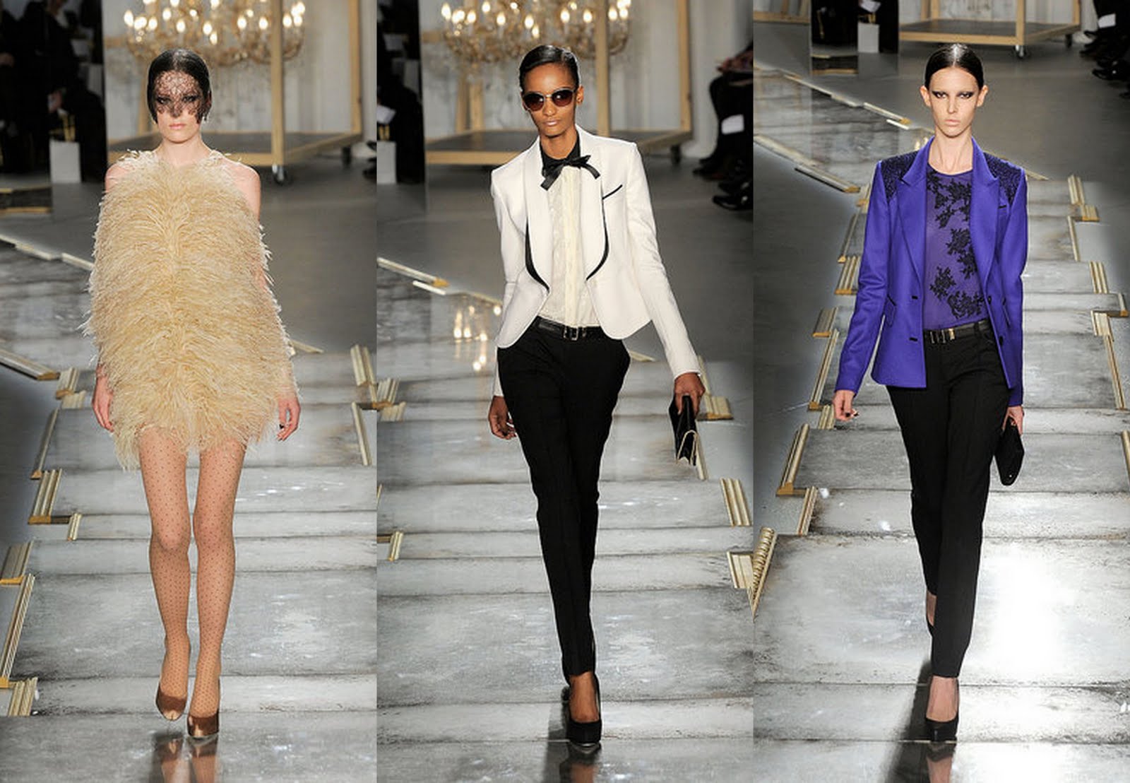 Jason Wu 2011 Kış koleksiyonunun vazgeçilmez parçası dantel.Bunun yanında altın işlemelerde göze çarpıyor.Uzun profilli eteği görmemle tül etek aşkım ateşlendi,bayıldım!Tasarımlara bakıldığında feminenlik ön planda fakat son yılların boyfriend trendini görmeye o kadar alışmışım ki yadırgadım açıkçası.Yüksek bel maskülen pantolonlar ve uzun blazerları içermeyen koleksiyonlar saraylardan kaçırılmış gibi geliyor.