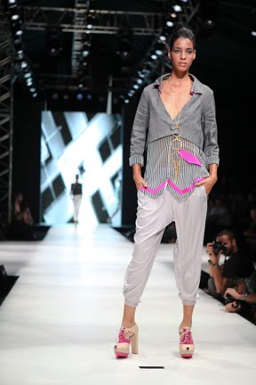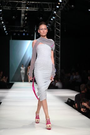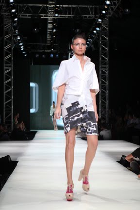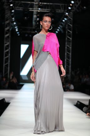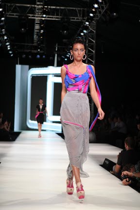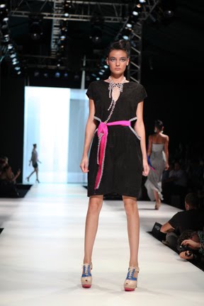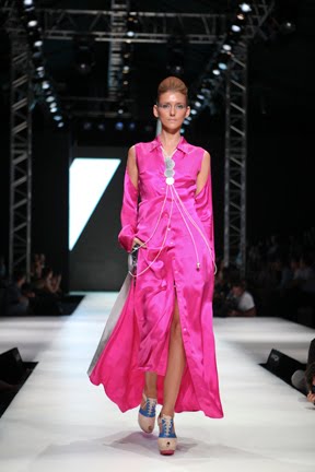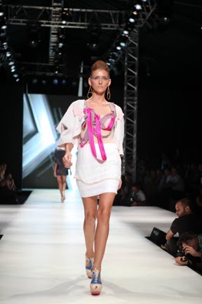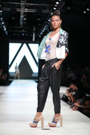 İstanbul Fashion Week'in ikinci gününde renkli koleksiyonuyla dikkat çeken Mehtap Elaidi var.Koleksiyona pembe,gri ve mavi tonları hakim.Ayrıca transparan tasarımların çokluğu da göze çarpıyor.Anlıyoruz ki yüksel bel 2011 yazında da çok trendy olacak.