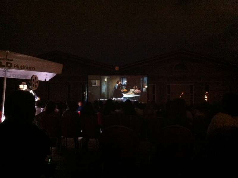 CERMODERN AÇIK HAVA SİNEMASI her salı saat 21.00'de muhteşem filmlerle izleyiciyle buluşuyor.Dün akşam ''AŞK DERSİ'' adlı filmi açık havada ve harika bir atmosferde izledik.Bilet fiyatları öğrenci 7 TL,tam 10 TL şeklinde.Fakat kamp sandalyelerinizi,minderlerinizi kapıp bilet parası ödemeden de bu keyifli etkinliğe katılabilirsiniz.Orta sıralardan filmi izlemek -eğer kısa boyluysanız- oldukça zor.Fakat sandalyelerinizi arzu ettiğiniz yere taşıyabiliyorsunuz.Alkol ve diğer meşrubatların tüketimi,sigara kullanımı serbest.İçeceklerinizi yanınızda getirebilir oradan da satın alabilirsiniz.Bir kadeh şarapla açık havada film izlemek inanılmaz keyifli olacaktır.
